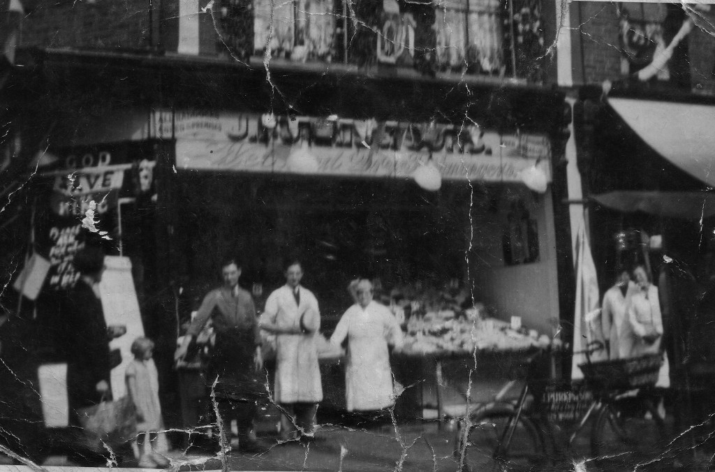My Name is Walter Purkis and I was born in Greenway Avenue Walthamstow, in February 1947. I have lived in Walthamstow nearly all my life, I went to Wood Street School and your Father was my teacher in about 1954. As time went on I when into the Fish Trade and for many years ran wet fish shops in Hoe Street and Wood Street as had many of my family before me. I still live in Chingford, but my fish business is now in North London. I have many family photo dating back over a century of both sides of my family, the Clare family from the High Street and the Purkis family from Wood Street. I have attached a few photo that might be of interest to your readers. First there is a photo of Wally Clare Snr. with his brother outside his fish shop in the High Street in around 1908. Then I have attached several photos of the Purkis fish shop at 123 Wood Street in the 1930 some of them showing the shop decorated for George V's silver jubilee. In October 1940 this shop was hit by a German bomb and there are two photos of the destroyed shop. Then there is a photo of the shop that the business was moved too, across the road, showing housewifes queuing with their newspaper own newspaper to wrap the ship in. lastly there is a photo of the Wood Street Walk and I believe It shows Alf (Deafy) Puline winning in 1954.
