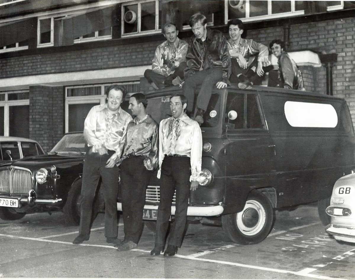 This was before we all started to wear the Silk Frilly Shirts of different colours. Venue Unknown.